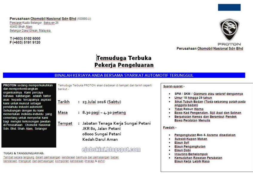Jmc Kota Bharu Temuduga Terbuka Proton . Wisma Kossan, Lot 782, Jalan Sungai Putus, Off Batu 3 ¾, Jalan Kapar, 42100 Klang, Selangor Darul Ehsan, Malaysia.