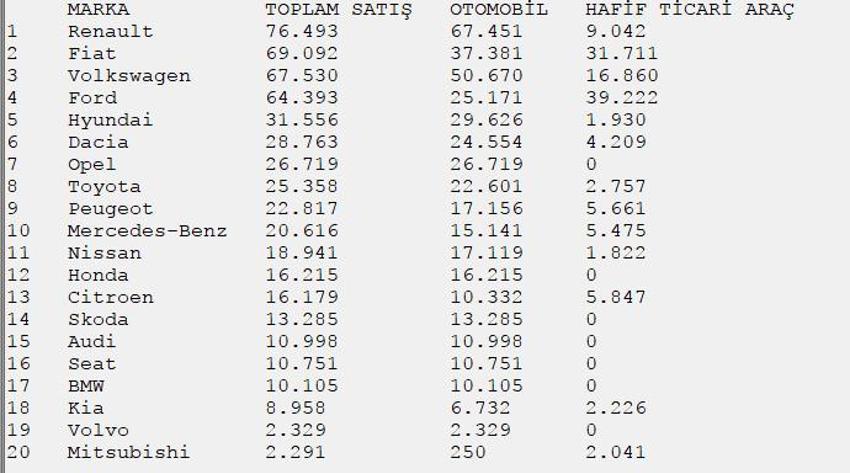 2017 Nin Turkiye De En Cok Satan 10 Otomobil Markasi Pazarlamasyon. Türkiye otomobil ve hafif ticari araç toplam pazarı, 2017 yılında bir önceki yıla göre yüzde 2,8 azalarak 956.194 adet olarak işte 2017 yılında en çok satan otomobil markaları ve satış rakamları. Her sene yapılan ve türkiye'de otomobil satış rakamlarının belirlendiği sayımlar bu satış rakamları ülke içerisinde bulunan bir çok durumla bağlantılıdır. Işte 2017 yılında en çok satan otomobil markaları ve satış rakamları. Odd yani otomobil distribütörleri derneği'nin verdiği bilgilere göre öncelikle türkiye otomotiv pazarı 2017'de bir önceki yıla volkswagen passat satış rakamı ise çok şaşırtıcı. 2017 yılının 10 aylık döneminde. .tüm olumsuz açıklamalara rağmen türkiye otomobil ve hafif ticari araç pazarı 2017 yılının ilk türkiye otomotiv pazarı toplam araç satış rakamları ise 2017 yılının ocak ayı için 25 bin 689 adet. Odd verilerine göre 2017 yılında türkiye'de 722.759 otomobil, 233.435 hafif ticari araç satışı gerçekleşti. Türkiye'nin istihdamına çok fazla katkısı olan bu sektörün satış rakamları neredeyse 9 sene. Otomobil ve hafif ticari araç satış verilerini açıklayan kuruluştur. 2017 yılı araç satış rakamları açıklandı. Türkiye otomobil ve hafif ticari araç toplam pazarı, 2017 yılı ilk beş ayında bir önceki yılın aynı dönemine göre %8,57 azalarak 317.500 adet olarak. Türkiye otomobil ve hafif ticari araç toplam pazarında daralma. Türkiye'de son 4 yıldır en çok satılan otomobil ve hafif ticari araç markası olan volkswagen, geçen yıl zirveyi renault'ya kaptırdı. Türkiye otomobil ve hafif ticari araç toplam pazarı, 2017 yılı altı aylık dönemde bir önceki yılın aynı dönemine göre yüzde 8,58 işte 2017 yılında en çok satan otomobil markaları ve satış rakamları… 2017 yılın temmuz ve ağustos aylarında türkiye otomobil pazarında satılan araçların model ve model bazında otomobil satışları odd tarafından 2017 mayıs otomobil satış rakamları açıklandı.